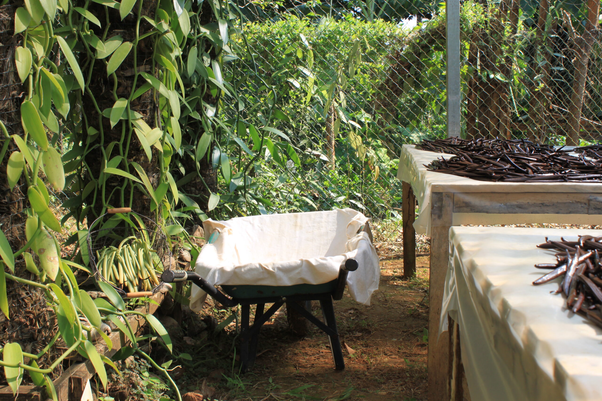 Une petite ombrière accolée à l'Atelier, un jardin d'observation des vanilliers et des techniques culturales.Un espace qui nous permet de mieux connaitre cette orchidée et de vous la présenter.